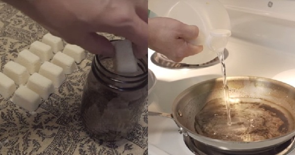 把鍋子放到火爐上,在鍋內倒入醋,蓋上鍋蓋後讓它在鍋裡煮,不久後焦痕就會剝落了,然後再放水冷卻,加入小蘇打粉輕刷,鍋子會煥然一新!