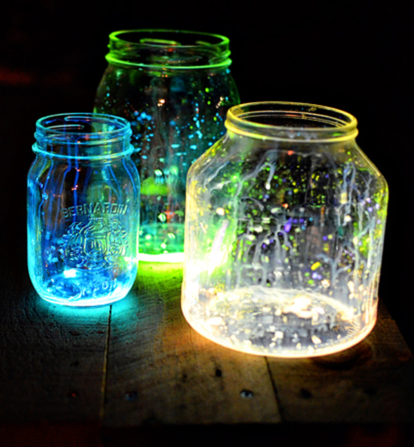 邀請朋友來家裡辦生日派對時,總是要花點心思購買一些飾品來佈置,但是當熄燈唱生日快樂歌的時候, 一片漆黑讓你一天的巧思全都看不見了,這個時候,住在加拿大的 Christina Friedrichsen 教我們的小技巧絕對會讓大家在關燈的瞬間驚訝不已。Christina 在她的部落格 Intimateweddings 裡,分享了很多關於婚禮佈置的巧思,這裡將為大家介紹的,原本是用在戶外婚禮的佈置上,但是這只需要幾分鐘就可以完成的螢光罐,只在婚禮中使用實在是太可惜了,不妨把營造婚禮的浪漫也帶到家裡,放在餐桌上,或是在院子裡,讓整晚充滿螢光色彩的樂趣。
