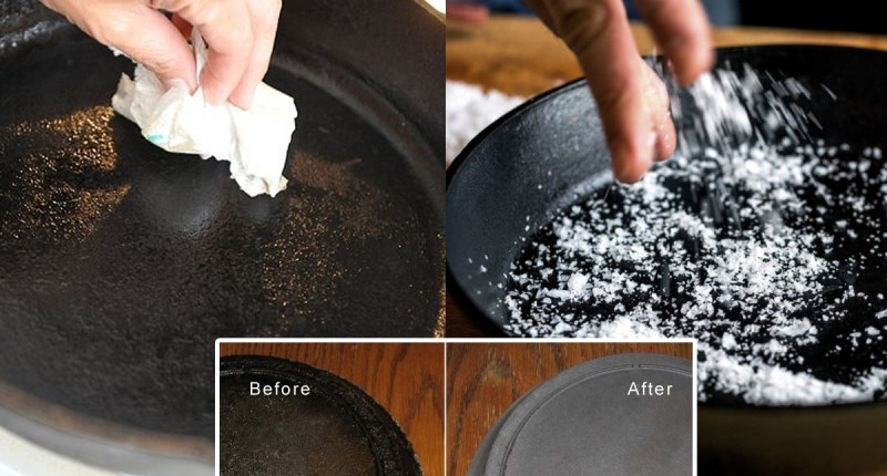 將鍋放在灶上,用小火乾燒一會,等鍋冒煙的時候,撒上一些鹽,晃動一分鐘後把火關閉,然後用清潔球擦拭,可以清除的很乾淨,不留底,也沒有糊味。