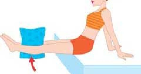 雙膝夾住枕頭,合力向內擠壓。坐在床上,將枕頭對摺後,夾在雙膝間,用力擠壓數十次。