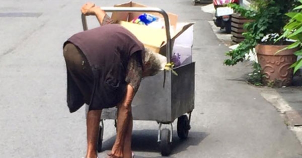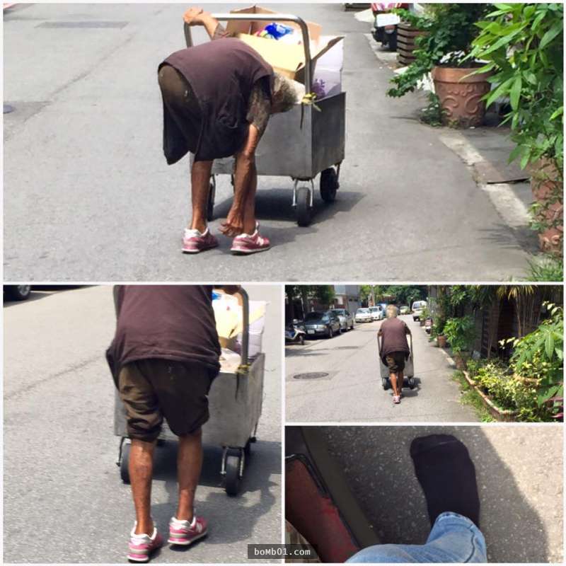 ▼網友把這位女孩的行徑在臉書的「爆料公社」轉貼給大家看,女孩表示「對她印象深刻是因為覺得她像魔法阿嬤,一樣的牙齒、一樣的膚色,往後的幾次看見她總是這一套衣服,穿著麻布米袋包裹雙腳,用橡皮筋固定。」她無法想像在台灣社會中還有沒鞋子可以穿的人,所以有了買雙鞋給婆婆的念頭,但又擔心新鞋會讓她捨不得穿,所以把自己的NB洗乾淨想送給阿嬤,不過自從這樣想後就不曾再遇見了…沒想到,「上週好不容易又在路上看見阿婆,她穿了雙破舊的拖鞋,一直懸著的心,總算安心一些;今天從學區要回辦公室的路上,再次遇見她,我傻眼了…竟是光著腳丫。」但是她剛好沒有帶鞋在身上,所以決定把自己的鞋子脫下來給阿婆穿。