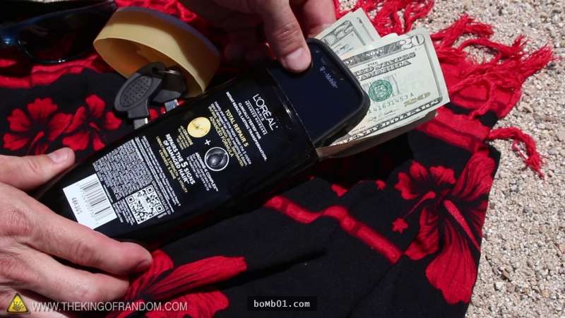 當你去海邊的時候,有些人會擔心錢或是手機被偷,這時候你可以先準備一罐用完的防曬油,把後面剪開後,把手機跟現金擺進去,就是最好的偽裝了。