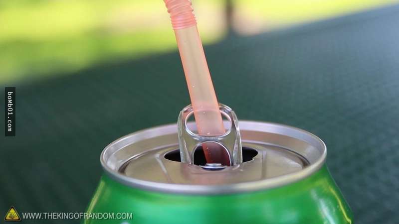 每次喝汽水的時候,吸管總是不願意好好待在罐子裡,其實你可以利用拉環,輕輕扳一下,把吸管從中間穿過去,就可以安穩地喝了。