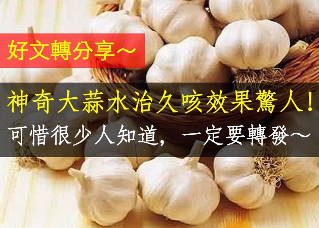 時下感冒咳嗽的病人很多,往往是咳嗽纏綿難愈,其特點是一癢則咳嗽。咽癢咳嗽是臨床常見症狀,在感冒前期或後期往往咽痛不明顯,而咽癢明顯,一癢即咳!在中醫看來這是風邪未除的表現。 中醫所謂「溫邪上受,首先犯肺」溫邪就是南方常說的風熱感冒,但是南方之人體質多虛,往往熱不明顯(咽痛不太厲害)夾風寒的較多,就是感冒往往是受寒、吹風後所致,咽痛之時,多伴有咽癢的症候。大蒜色白入肺,性味辛溫,最善除肺經之風邪。故治療伴咽癢的咳嗽往往有奇效! ] 其用法如下,皆有所驗,選一即可!