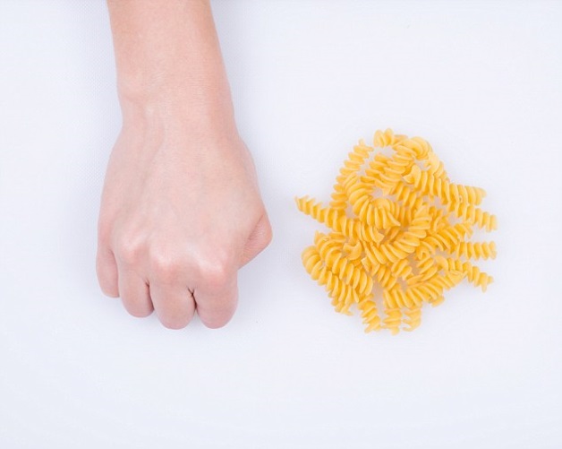 6、沒煮過的義大利面:拳頭大小(大概佔餐盤1/4)
