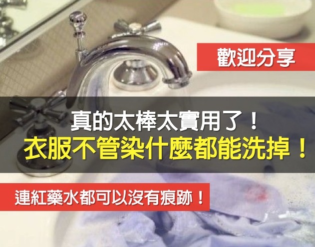 紅藥水漬可先用白醋洗,然後用清水漂淨;