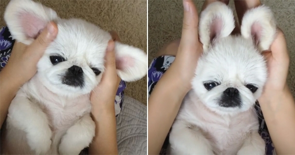 ▼主人常把牠的耳朵揪起來,看起來就像一隻可愛的兔兔!