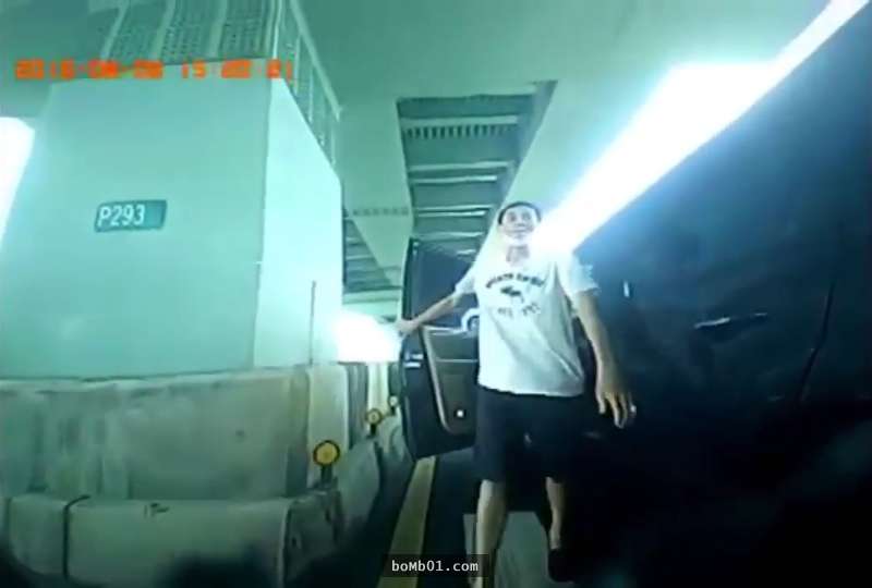 剛開始從轎車上下來的男子態度囂張,看到重機騎士壯碩的體型後,卻立刻變成了另外一副模樣。