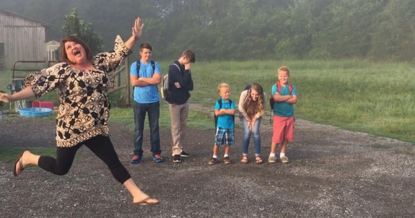 ▼她將照片上傳到網路上,並說:「快樂開學日!我會想念你們的,麻煩大家將照片分享給其他需要大笑的家長。