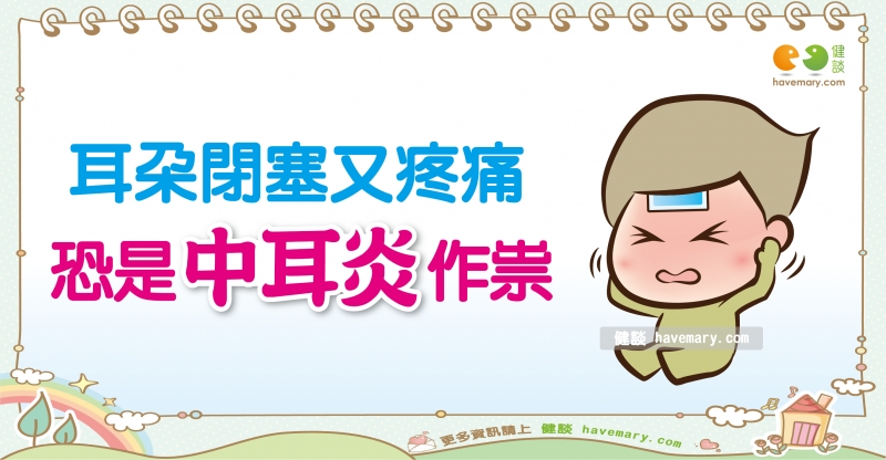 若幼童出現中耳炎問題時,若尚不會說話者,可能會出現拉扯、摩擦耳朵的現象;此外,中耳炎亦常伴隨著上呼吸道感染,因此,幼兒可能也會出現發燒、鼻塞等症狀。