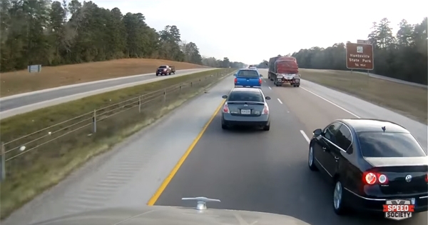 下面這名卡車司機在內側車道正常行駛,外側車道一台女駕駛的黑色轎車突然馬上切入內側車道,另一台車也想效仿,他忍無可忍,決定給這些人一個教訓。
