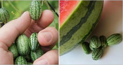香甜解暑的西瓜有誰不愛嗎?事實上,這種小西瓜被稱為墨西哥酸黃瓜 (Mexican Sour Gherkin)或是鼠瓜 (Mouse Melon),口感類似水分較多的小黃瓜!因其貌可愛又酷似西瓜,長度也僅僅只有3釐米左右,所以常常被人稱為「拇指西瓜」(Cucamelon)!