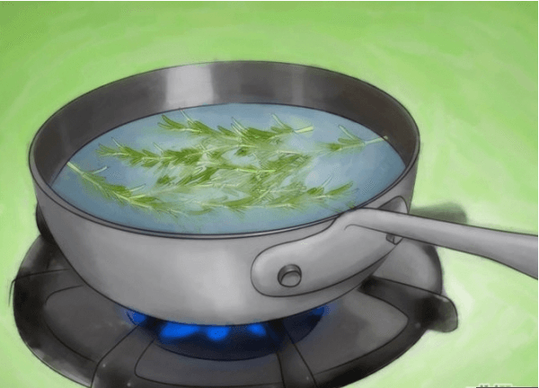 將兩杯新鮮的迷迭香葉放入兩品脫水中煮 30 分鐘,