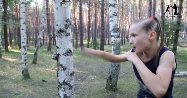 俄羅斯人人稱戰鬥民族,真的不是叫假的!一名8歲的俄羅斯小女孩在森林裡練拳,還現場示範徒手將一棵樹的樹幹打爆,威力真的太驚人了!