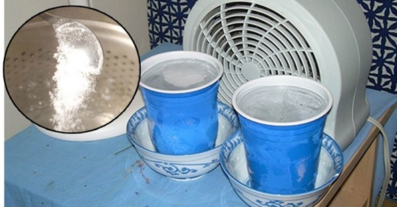在電扇跟前放一杯冰塊,然後站在電扇面前,這樣涼風就會吹向你。