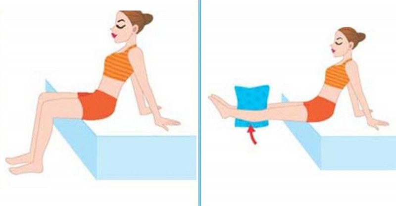 身體側臥,運用腿肚力量夾住靠墊。雙手撐地以保持身體平衡。抬起頭部,眼睛直視前方。調整呼吸,雙腿夾住靠墊並向上抬起,動作要慢才能達到理想的瘦身效果。 10次動作為一組,重複10組。