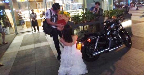 不論是在電影或是小說中,許多女孩們都幻想過浪漫的求婚情節,由另一半所帶來的神秘驚喜往往都令人難忘,但是隨著時代改變,「求婚」這件事或許不一定要男方才能做,最近在中國上演的一場路邊求婚記,一位長相甜美的女孩穿著婚紗,騎著哈雷機車直奔男方求婚!