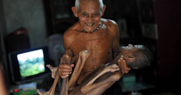 ▼照顧這樣一個完全無法自理的病患,對年老體衰的爺爺來說,無疑是一個非常沉重的負擔。然而同樣瘦削的Toton卻始終堅持不離不棄,用自己的生命在守護和愛護著孫子,真摯的情操讓許多人都為之感動。