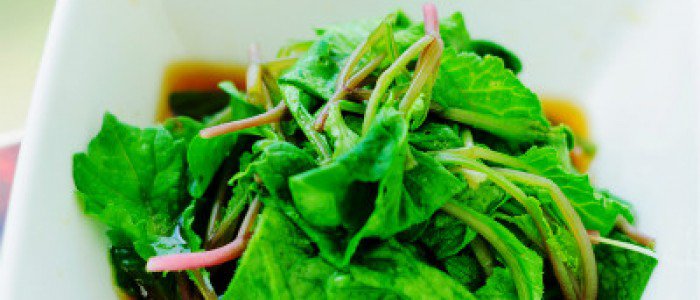 洗好的蘿蔔苗用開水焯燙,去除青澀味道。