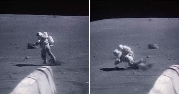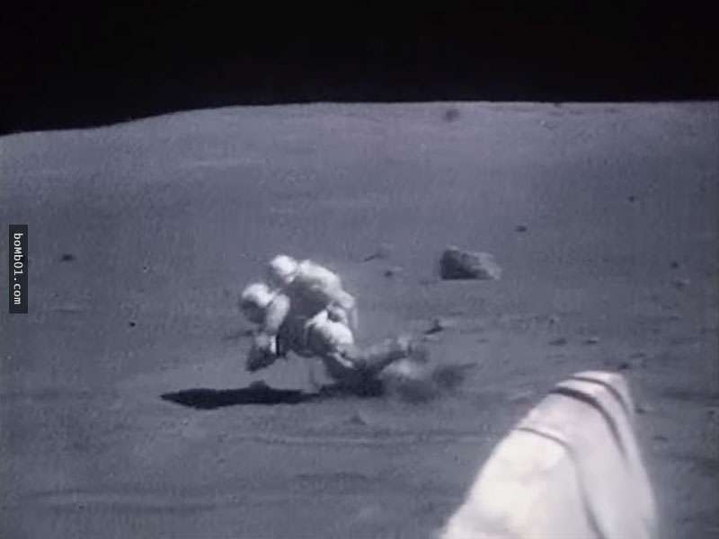 ▼月球的地心引力只有地球的1/6,換句話說,一個人的體重去到了月球上時幾乎比原來輕了6倍。也正因為如此,太空人其實也像是寶寶般必須重新學會協調自己的肢體動作,不過在他們成功適應月球的地心引力之前,許多搞笑的一幕也就此誕生: