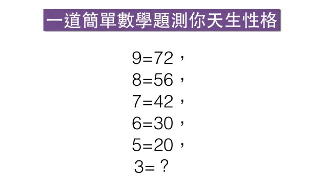 網上瘋傳一道看似國際智商測試題裏的數學題,據說能從答案看出一個人的性格類型。