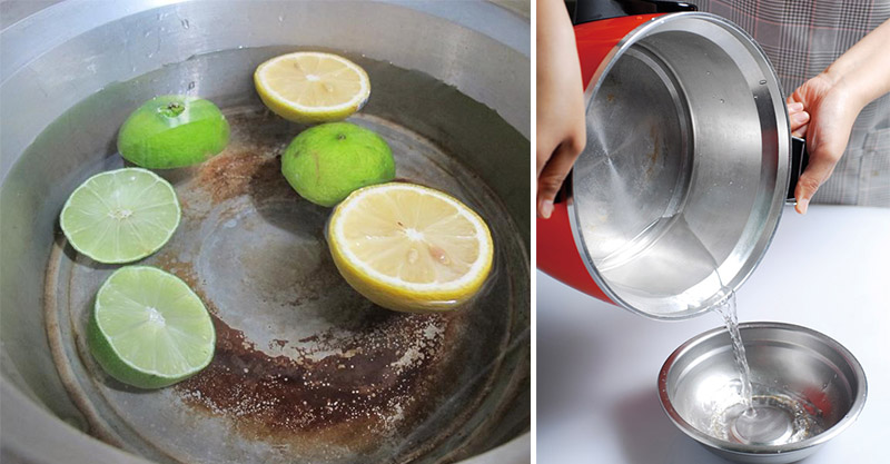 電鍋使用久了會在底部累積水垢,最簡單的清除水垢方式,拿2、3顆切開的檸檬,加水至8分滿,蓋上鍋蓋,開啟「煮飯」模式,接著等30分鐘,不一定要等到開關跳起來,把它轉成「保溫」模式再悶個2~3小時,倒掉汙水後就可以輕鬆刷掉水垢囉!