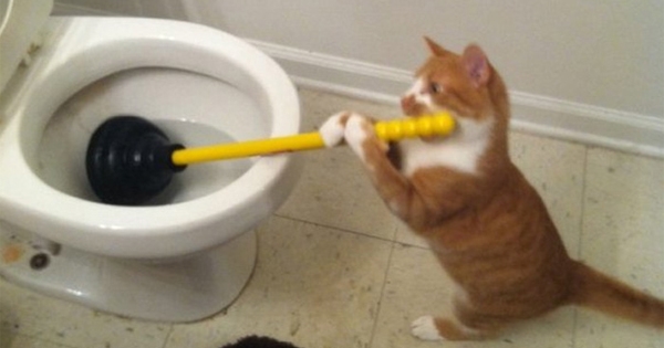 ▼1. 會幫主人刷馬桶的貓咪:「家裡永遠都只有我在做家務,都沒有人來幫我,真是的…」(嘀咕)