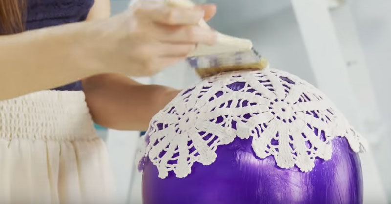 1. 先把氣球吹起來、2. 把整個氣球塗滿柔潤劑、3. 把黏膠、面粉、水攪拌均勻、4. 把蕾絲紋紙用漿糊黏到氣球上、5. 把裡面氣球給戳破、6. 把燈泡放到球裡面。