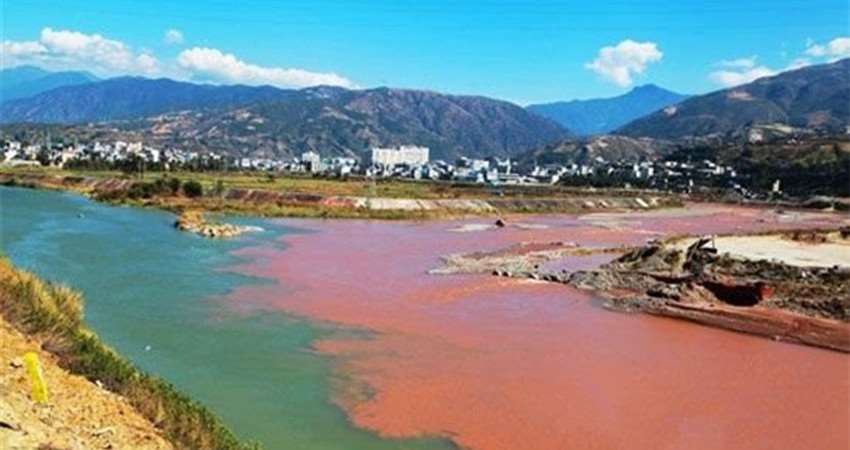 據當地民眾介紹,紅色河水為上遊在大山深處的孫水河,一旦上遊下雨或下雪就會因為地質沖刷變成磚紅色,不知情的人常以為是上遊工廠排放工業廢水,在豔陽照射下特別明顯