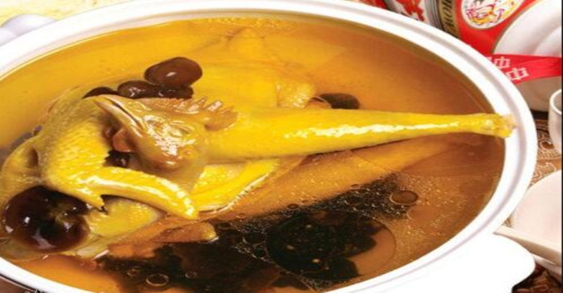 燉湯的時候,將雞油放在湯中,這在烹飪中有「以油養湯」的說法。
