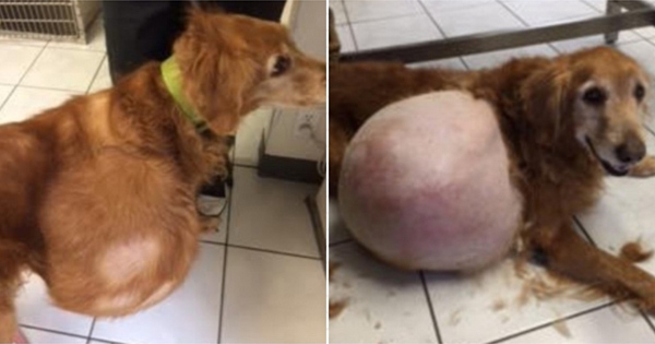 ▼今年五月份,飼主 Sherri Haughton 帶著她身上長了20公斤腫瘤的黃金獵犬來到位於加州海灘上的獸醫院,但她卻謊稱這是她在海灘上找到的流浪狗,試圖撇清責任。