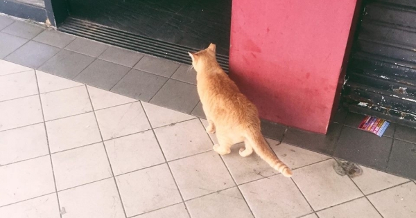 台北有一家火鍋店因見附近的街貓「小橘」很可憐,平時都會餵養牠,無奈在幾個星期前,火鍋店結束營業了。關門多日的店麵日前有人開門整修,有網友發現「小橘」竟然跑到店門口探頭查看,可憐的背影讓人心疼。