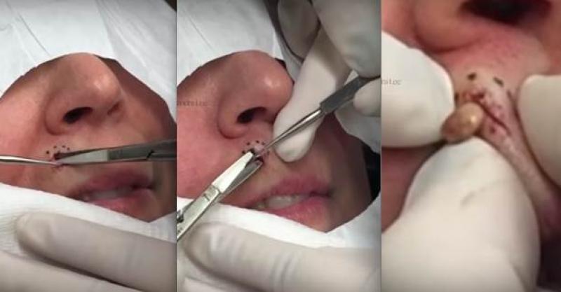 女子嘴角上長了顆超可怕的「不明腫塊」把她給嚇壞了!最後醫生把肉剪開,一擠下去「那東西」竟直接爆出來....