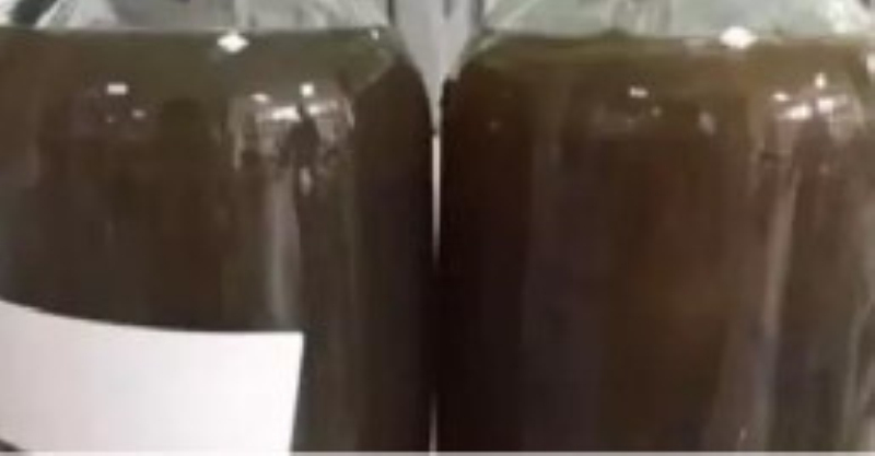 醫生從他體內抽出了兩瓶「黑血」,就是下麵這兩瓶黑褐色的液體,不是墨水不是中藥,你猜得到它是什麼嗎?
