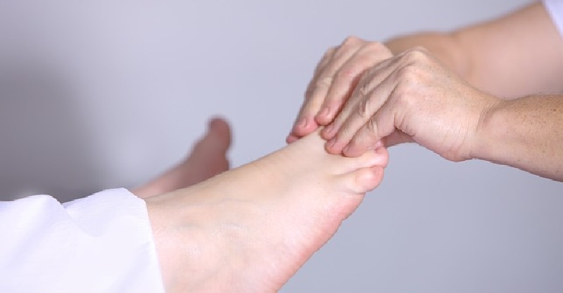 4、動脈搏動減弱;在人的足背與腳踝之間有一根肌腱,在肌腱與中間的腳趾連線上,我們可以摸到腳上的動脈搏動情況。