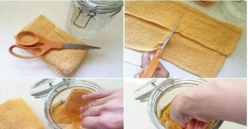 ▼接著將毛巾剪成小塊,放進玻璃罐中,密封浸泡2-3小時。