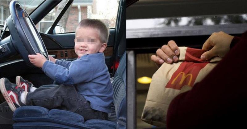 當小男孩抵達得來速窗口時,點餐員工見到駕駛座上的竟是個孩子,更是嚇傻了,還以為是開玩笑。