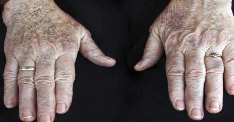 常發於中老年人的手背、前臂和麵部等部位常發生在老年人。隨著年齡的增加,通常在綠豆和杏仁形大小的褐色或黑色的斑點。