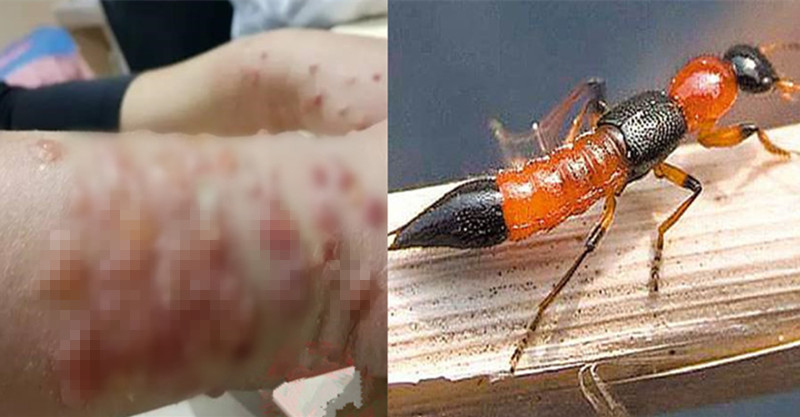 專家表示,毒隱翅蟲體內含有一種強酸性的隱翅蟲毒素。當蟲體被擠破時,毒素會流出,人體皮膚接觸後會被腐蝕,繼而引起皮膚紅腫、刺痛、奇癢難忍、糜爛、結痂及鱗屑、水皰等癥狀;嚴重者甚至可伴有噁心、嘔吐、發燒等全身癥狀。