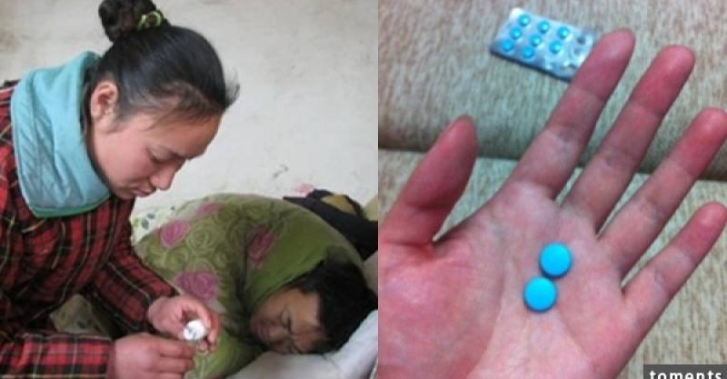 他從口袋裡拿出一個盒子,打開盒子,是一顆藍色的小藥丸。他說,「這顆,叫做』天長地久藥』,你老公吃下它,便可以忘記第三者,重新回到你身邊。