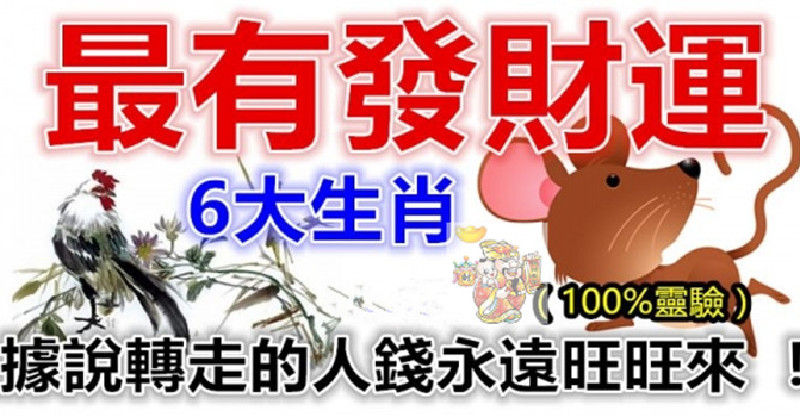 十二生肖每個生肖都有自己命定的運勢,有的可能這一生會多災多難,有的則是天生富貴,有些在婚姻方麵幸福美滿,有些則是在事業方麵能夠創下新高,所以不要羨慕別人的好,也許你也是正被別人羨慕著什麼,今天,我們就來聊一聊最有發財運的6大生肖。