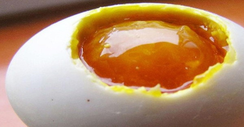 然而,當鹹鴨蛋經過在鹽水中醃製,蛋黃中的蛋白質就會被變性鹽析,從而凝固,它所包裹著的脂肪自然也就被解脫出來。