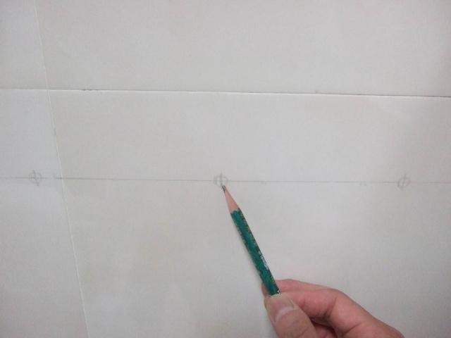 用筆在瓷磚上畫好要釘釘子的位置,但做這一步之前要看下水電圖,後麵沒有水電線才可以,不然就要重新選位置。
