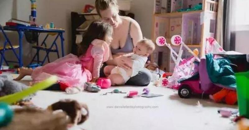 DiVincenzo的舉動需要超出常人的勇氣。因為作為一個女人,誰也不希望有人看見自己的大肚腩,斑駁的妊娠紋,呆滯毫無活力的眼神以及一屋子像垃圾場一樣的雜七雜八。但這就是生活,產後的生活。