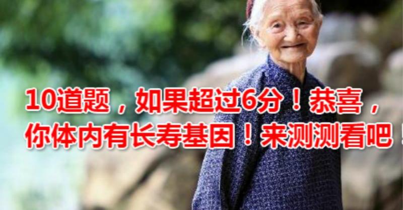10道題,如果超過6分!恭喜,你體內有長壽基因!來測測看吧!