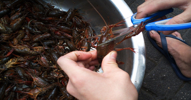 小龍蝦有兩個部位不能吃,一定要去除掉,而且小龍蝦烹煮之前一定要在清水中養1-2天,讓其吐盡泥沙汙物。