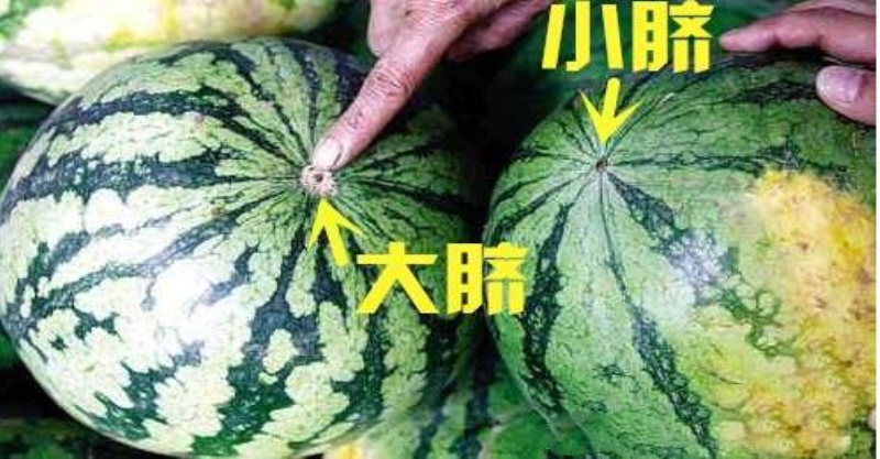 瓜臍是西瓜開花時花瓣的位置,農村有經驗的瓜農通過瓜臍的大小、凹凸來判斷西瓜皮的厚薄和口感。一般西瓜瓜臍越大西瓜皮越厚口感越差,反之,西瓜皮越薄口感越好。另外,避免選擇瓜臍凸起或凹陷的厲害的西瓜,選擇瓜臍微凹的西瓜,這樣的西瓜糖分較高、成熟度較好。