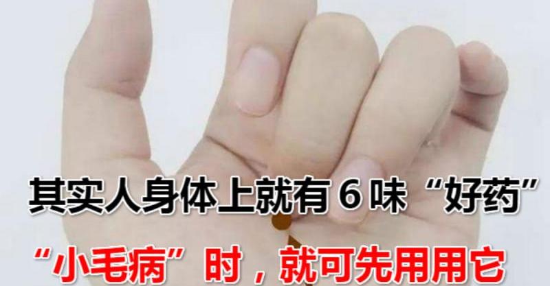 現在的人們,生活條件好了,喜歡吃各種保健品,又過度相信藥物,以為藥物能包治百病,其實如果平時不在飲食、運動等方麵注意,等真有了什麼大病,可能吃多少藥都無回天之力了。其實人身體上就有6味「好藥」,在平時或遇到一些「小毛病」時,就可先用用它。