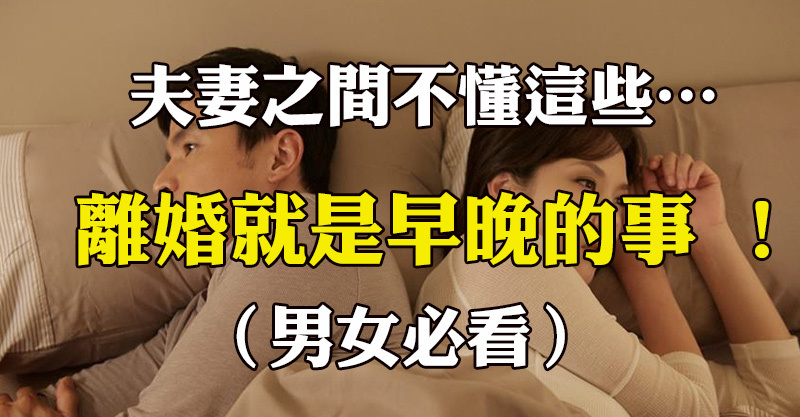 夫妻之間不懂這些......「離婚」就是早晚的事 !(男女必看)