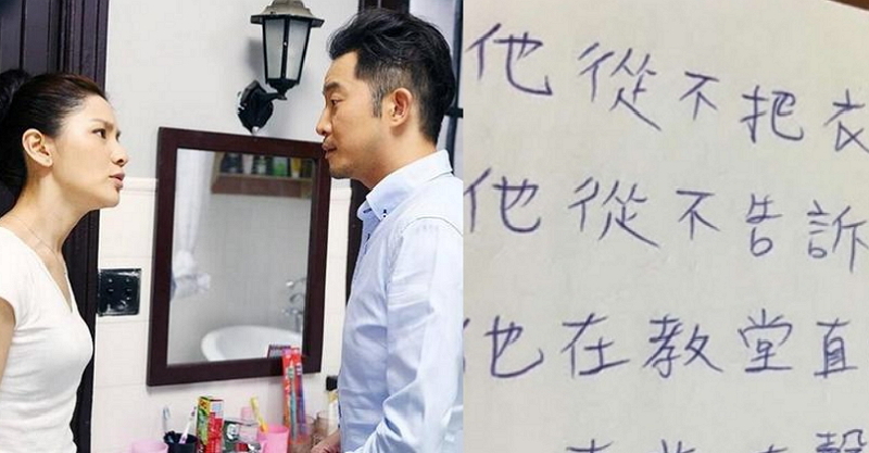 但她還是寫了一大堆,她認為真的受不了的鳥事「他從不把衣服拿去洗、他從不告訴我他去哪裡,他在教堂裡直接打瞌睡、他喜歡大聲擤鼻涕、他曾在街上大吐特吐、他從未買禮物給我過、他很窮、他衣服襪子從不分類、他從不幫忙家事、他從不開誠布公和我溝通、他從不關注我的生活…」